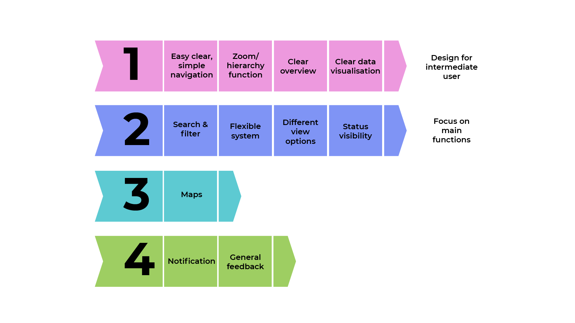 - Prioritization matrix: user journeys first, then flows